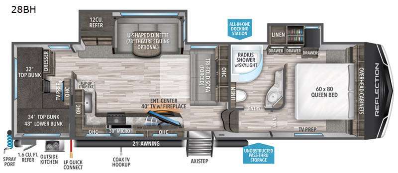 You will appreciate the warmth of the fireplace as well. 2018 grand design reflection travel trailer 312bhts reviews prices specifications and photos. Young rv woodland wa 182 mi. Outside kitchen imagine your family playing games at the dinette while you are relaxing on one of the theatre seats watching the big game on the 40 tv.