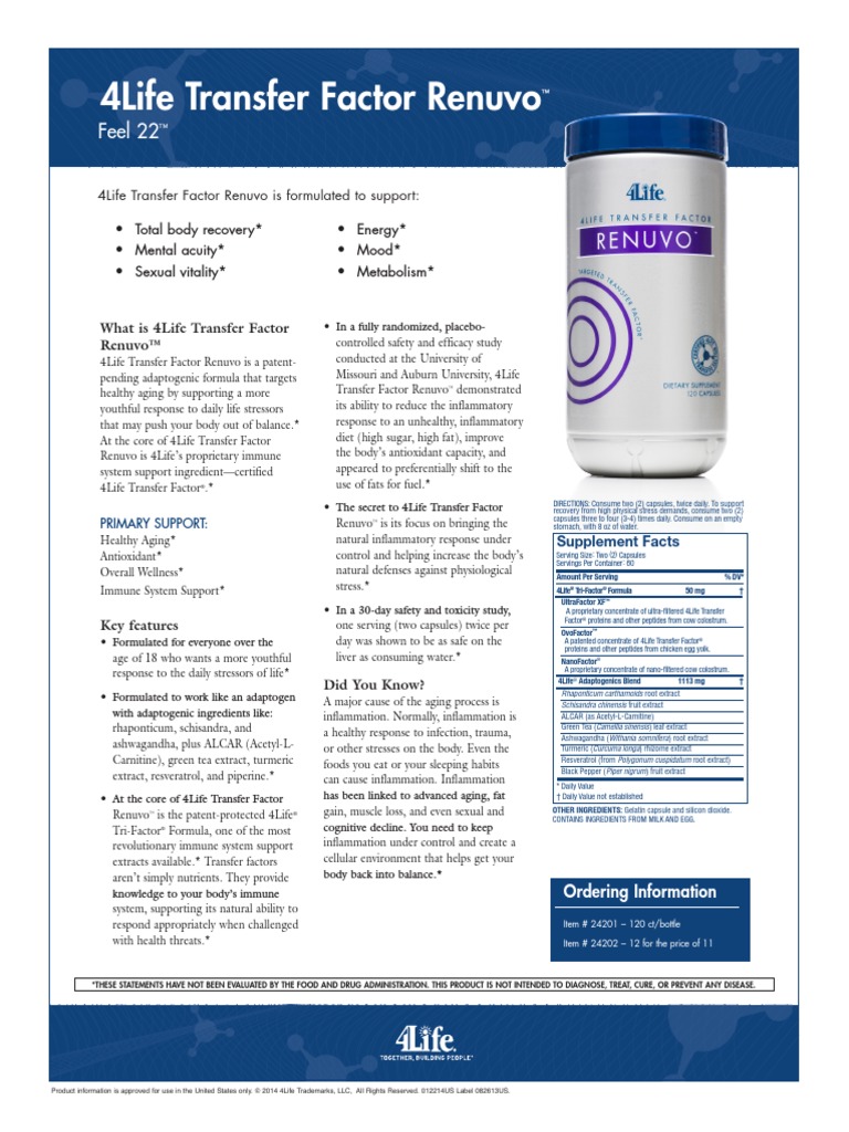 4life transfer factor renuvo reviews. Product features 4life transfer factor renuvo food supplement 120 capsules net wt. 4life transfer factor renuvo complément alimentaire 120 gélules poids net. Total retail price. 4life transfer factor plus is a product designed with.